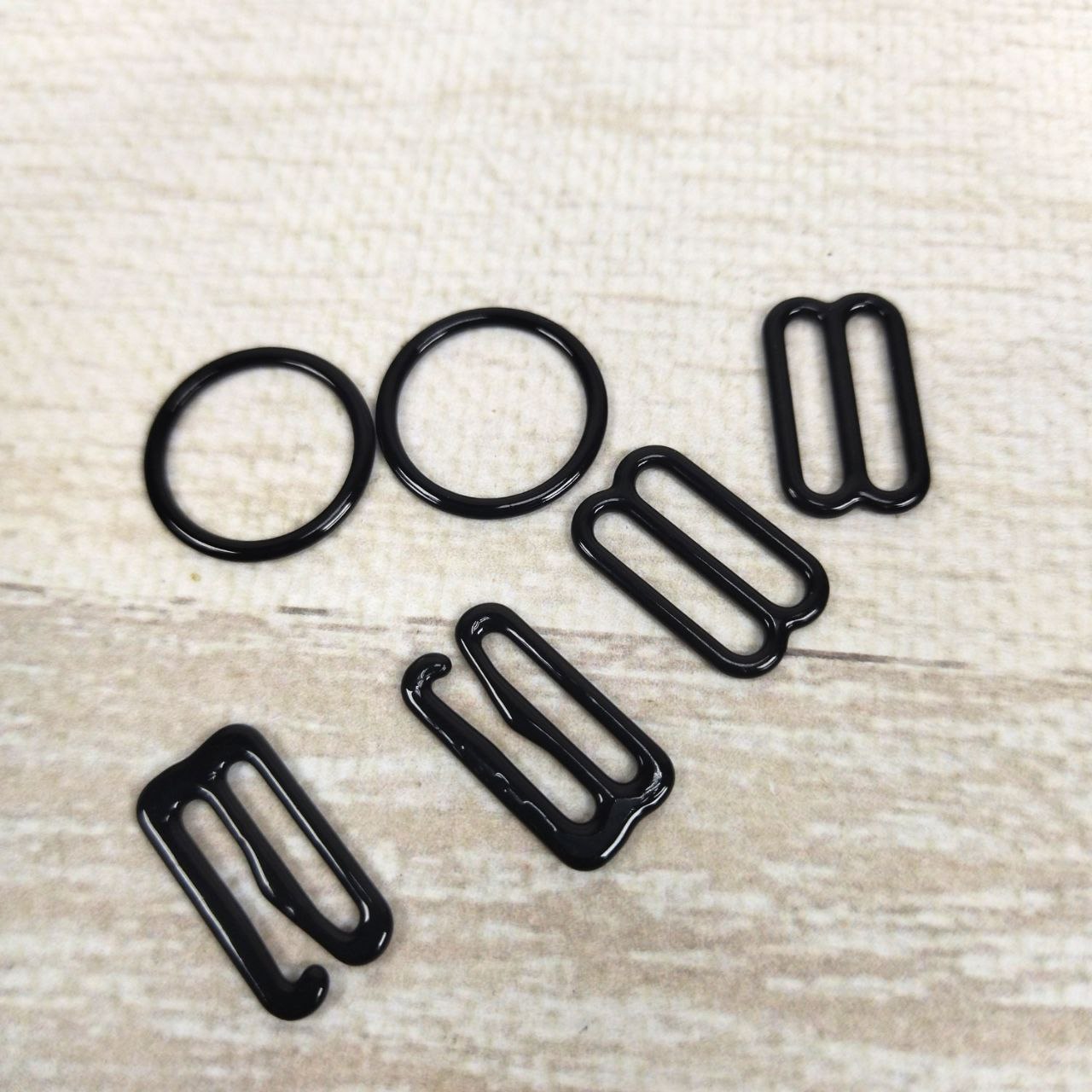 Главная страница » Магазин » Білизняна фурнітура » Кісточки, чашки, кільця, гачки, регулятори » Набір (кільце+регулятор+вісмірка) чорний 1,2см 6 одиниць