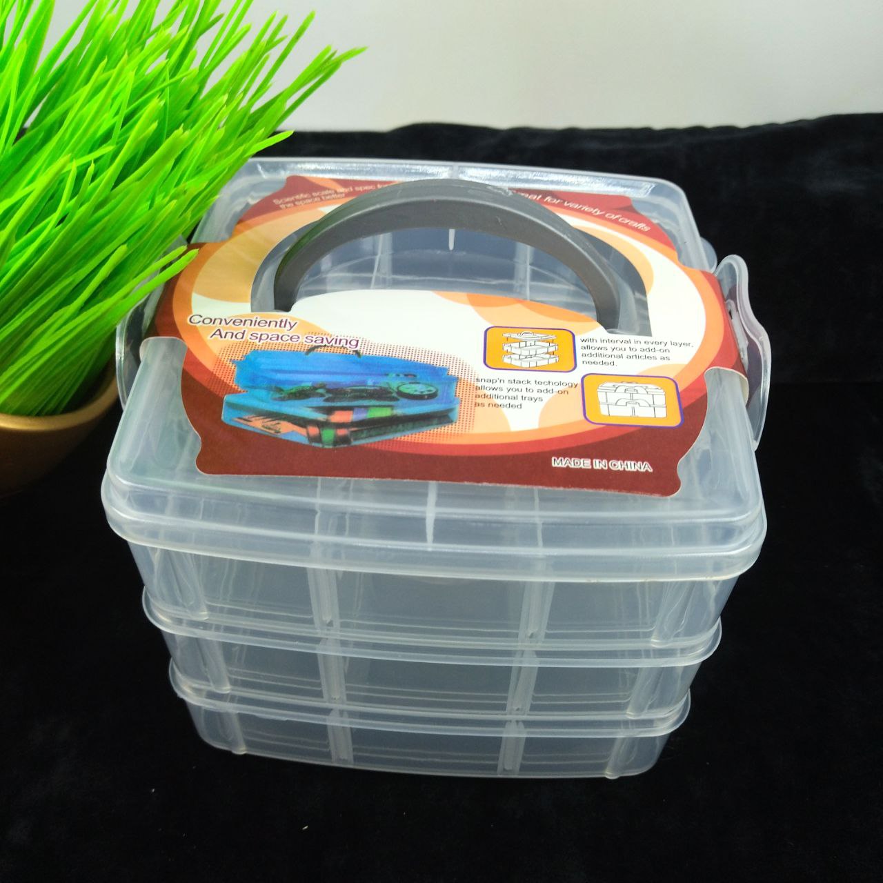 Органайзер пластиковий триярусний прозорий 160х150х130 мм із кришкою та ручкою