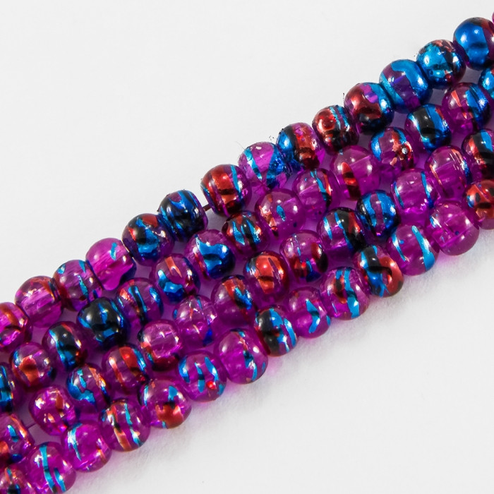 Бусины Стекло Кракле Двухцветные Круглые 6мм Малиново-желтый А55