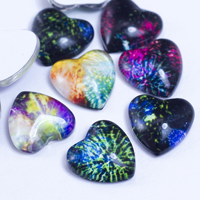 Кабошоны Стеклянные, Сердце 12*12*4мм, Микс