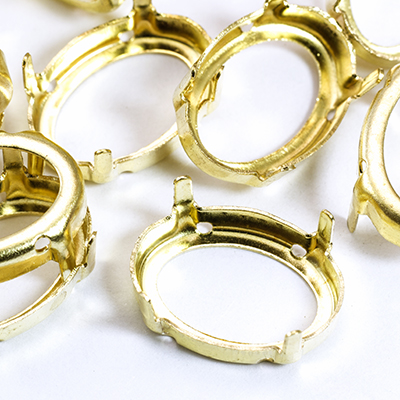 Цапы для Риволи, Сеттинг под Стразы, Латунь, Овальный, Цвет: Золото, Размер: 18х13х0,4мм, Отверстие 1мм, Под стразы 13х18мм