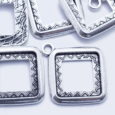 Кулон-Сеттинг Квадратный под Кабошон, Металл, Цвет: Античное Серебро, Размер: 27х24мм, Внутренний 19.5х19.5мм, Толщина 2мм, Отверстие 2мм,