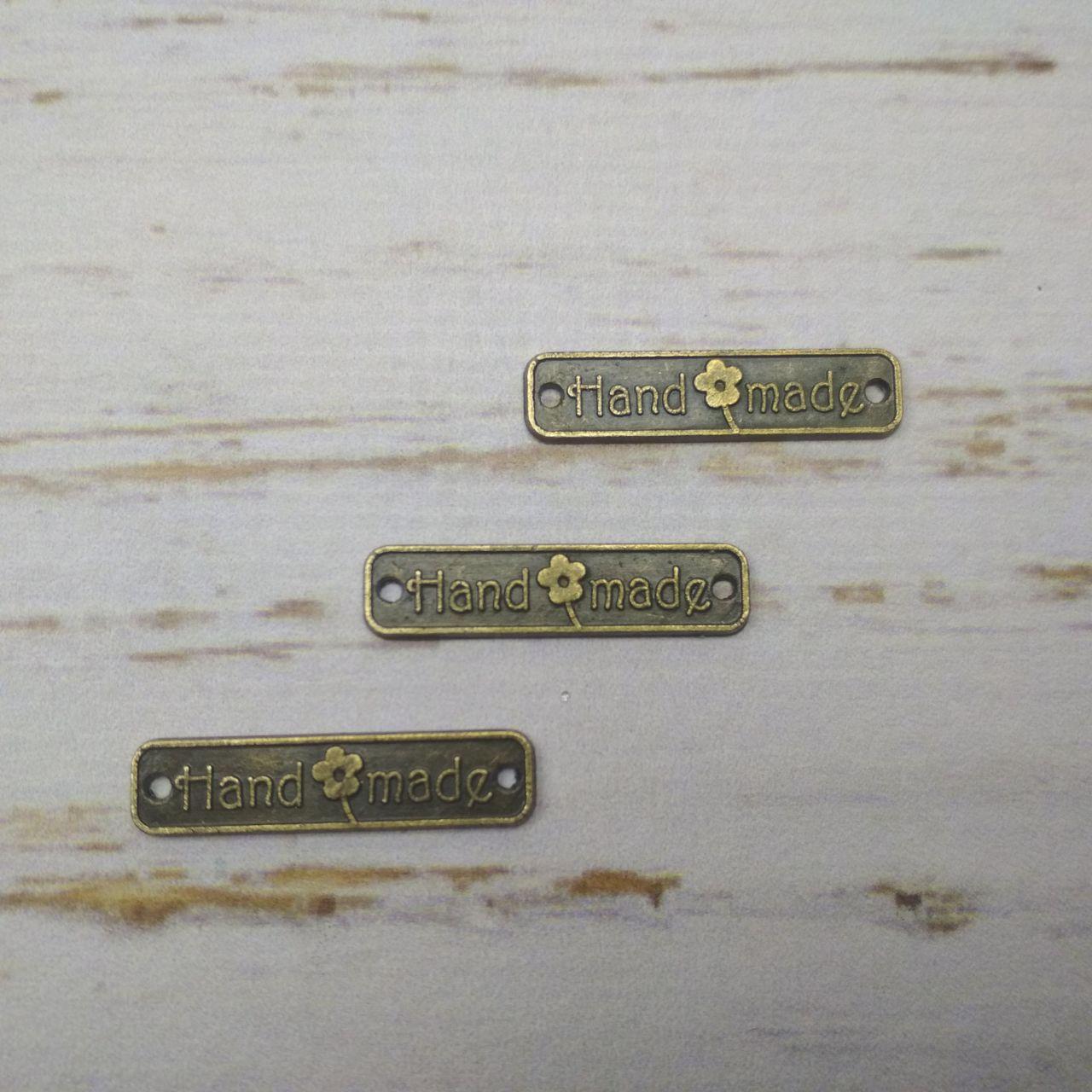 Металлическая ретро-бирка HandMade 25*6мм .