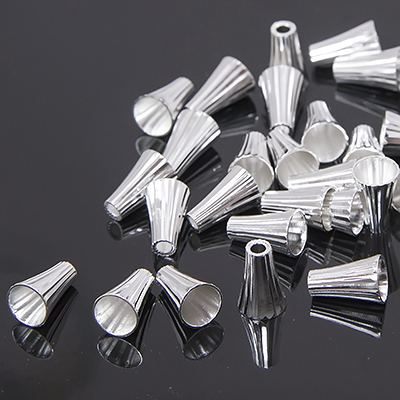 Конус Латунный для Бусин, Цвет: Серебро, Размер: 11.5х8мм, диаметр внутри 6мм, Отверстие 2мм