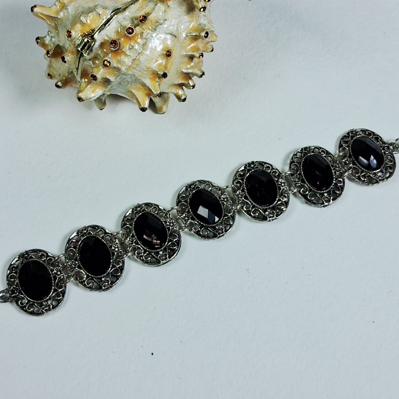 Браслет Ажурний з чорними овальними камінцями 20,5см