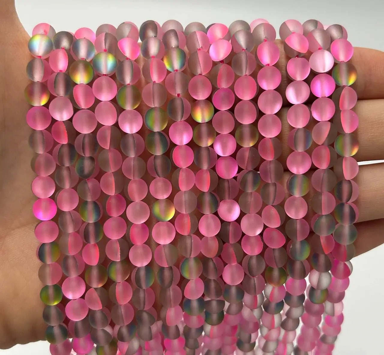 Кожна намистина має матову поверхню з ефектом «котячого ока» і переливами, які створюють красиву гру світла.