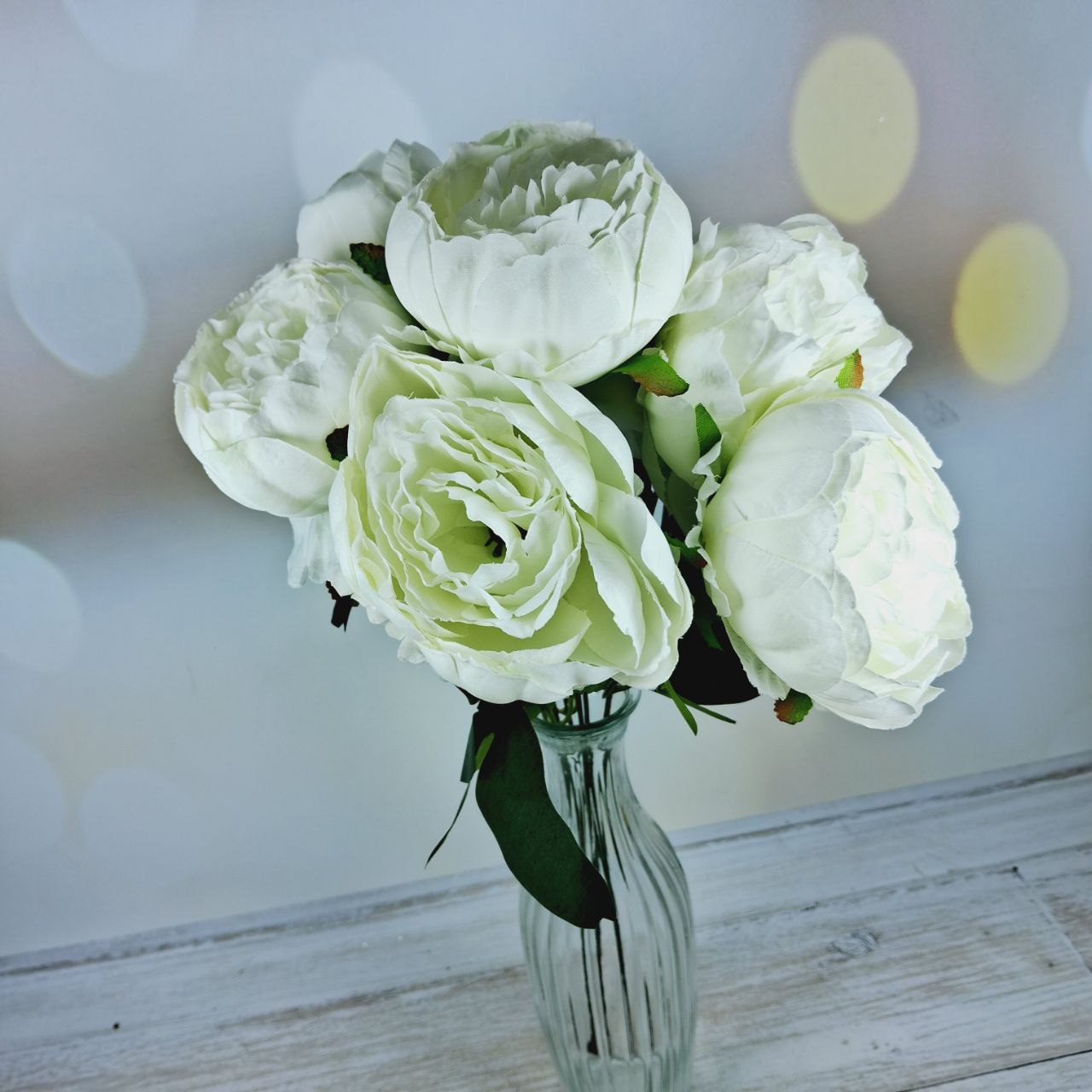 Главная страница » Магазин » Флористика » Букети квітів » Букет півоній “Белла” 7гол. СТ342 45см біла