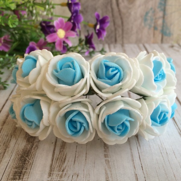 Букет роз из фома 3см 12шт бело-ярко-голубой