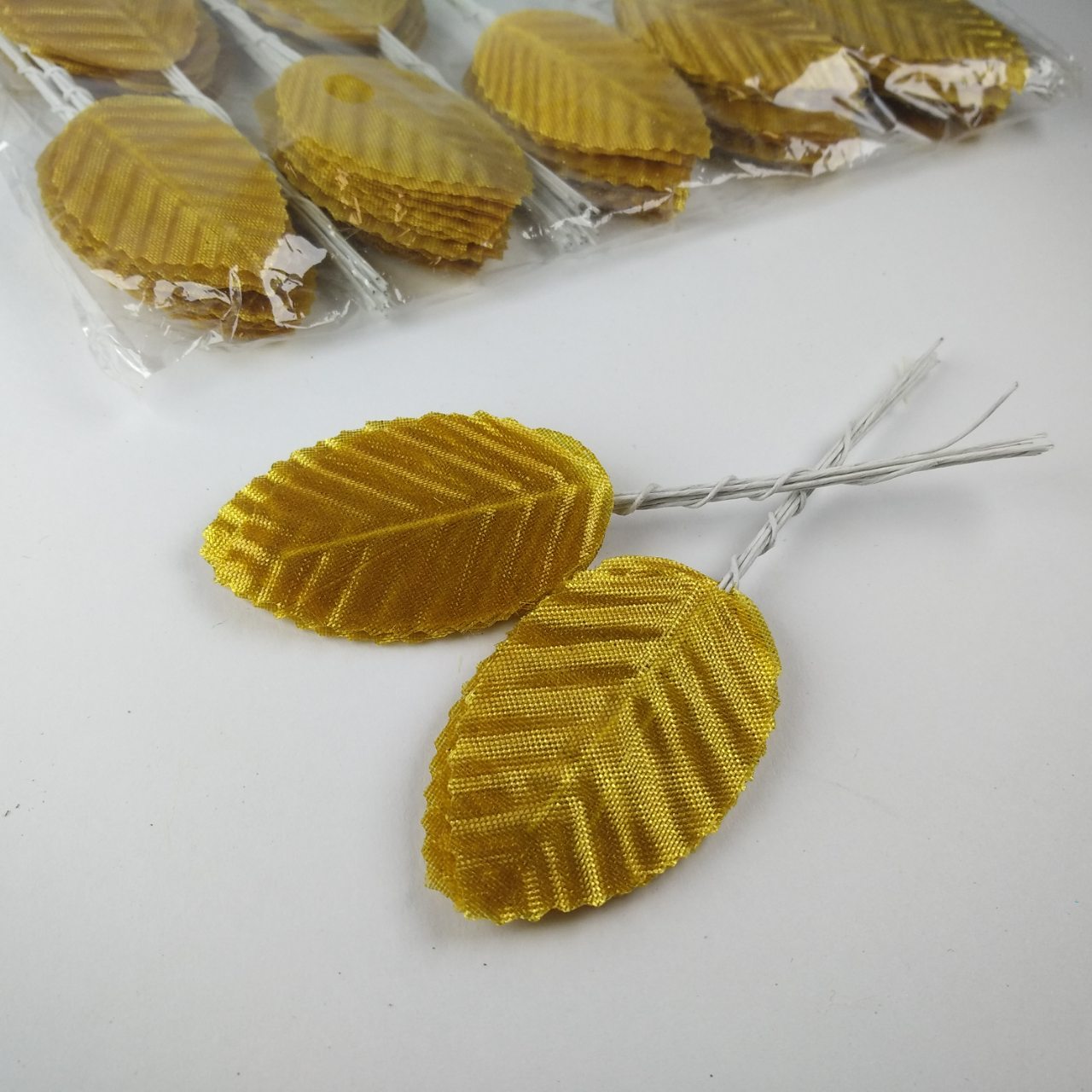 Бутоньерка листики тканевые 5см Золото 10шт Л1