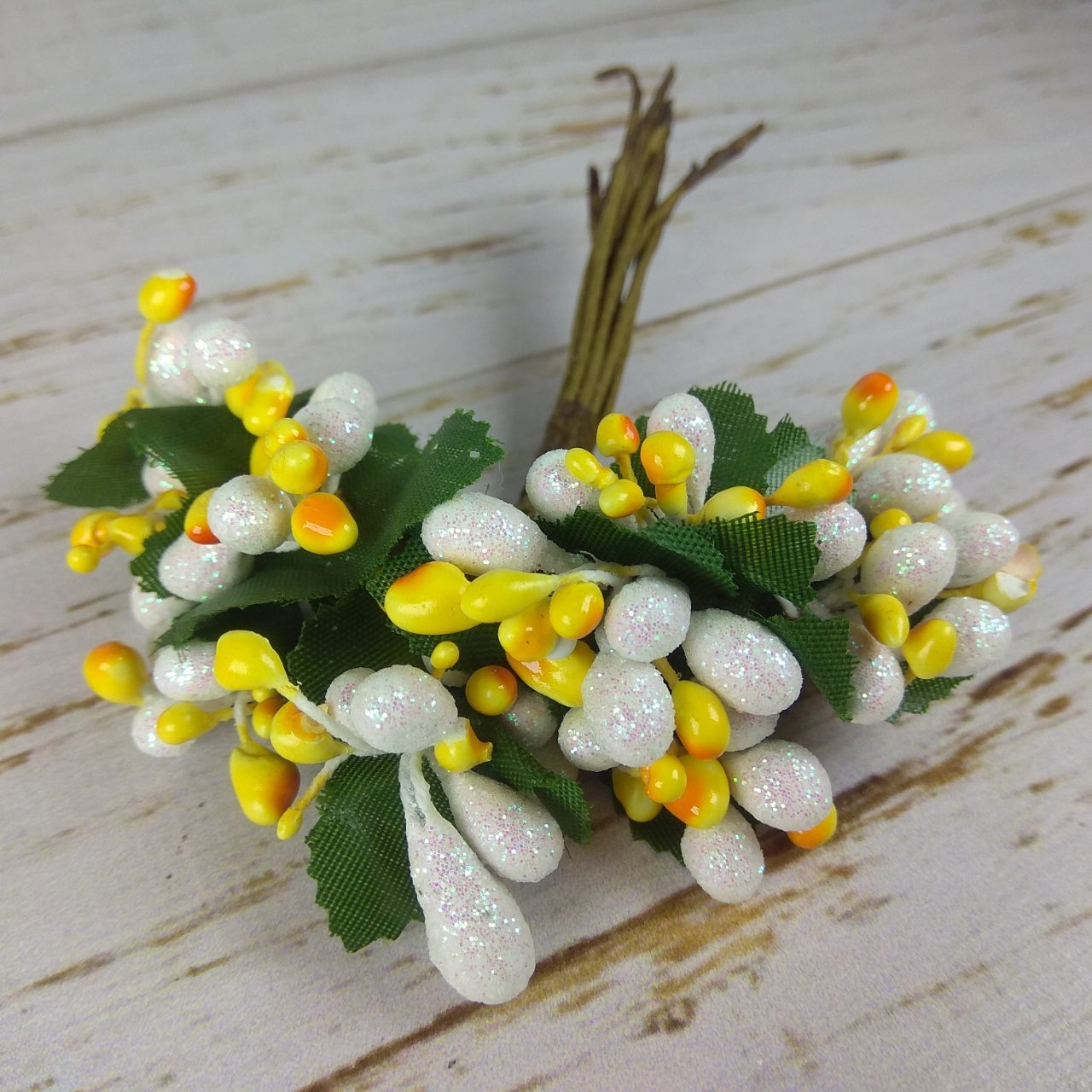 Добавка Тычинка двухцветная с блеском 11см желтые 7516