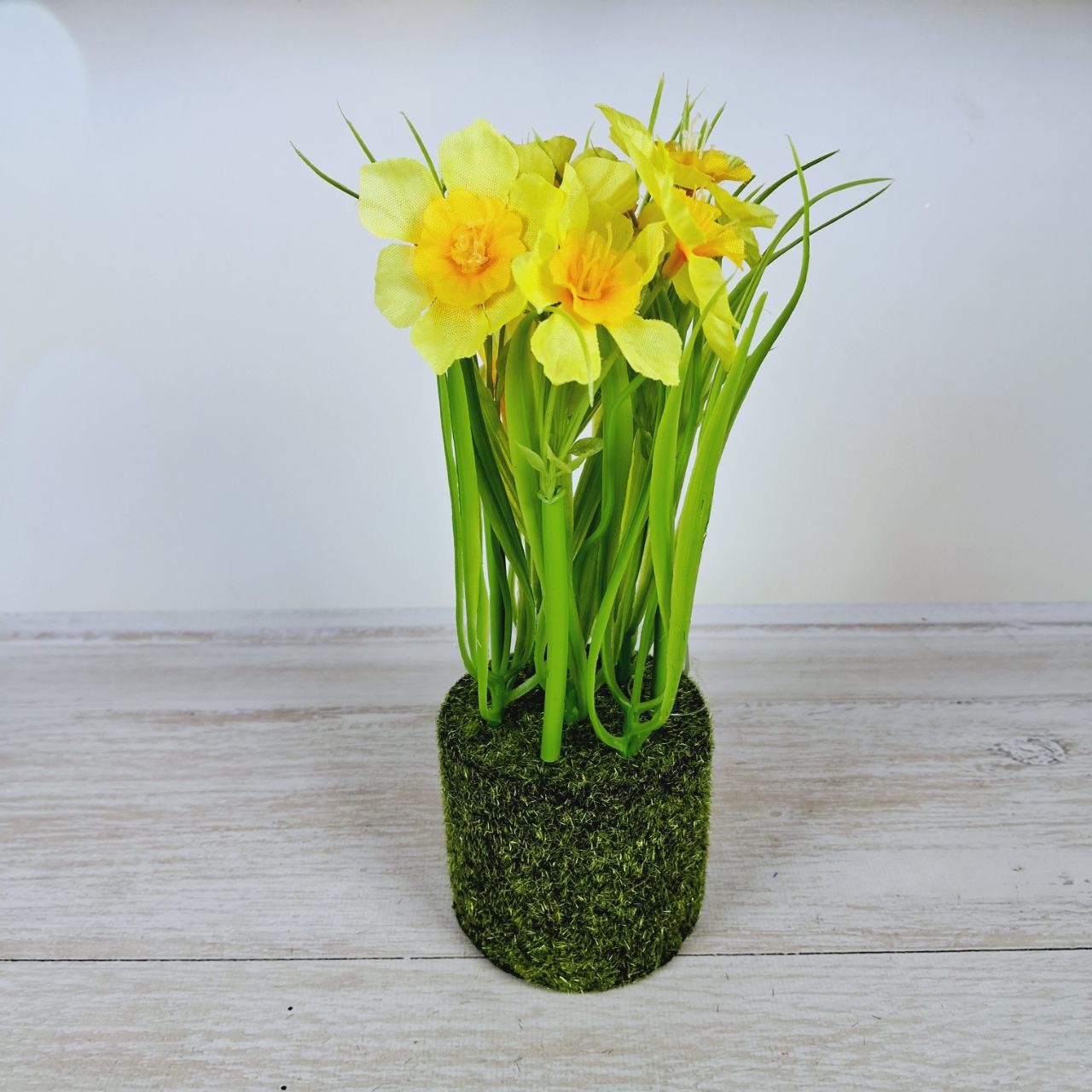 Нарциси зі штучним мохом пластик 22см жовтий із зеленим 714-129