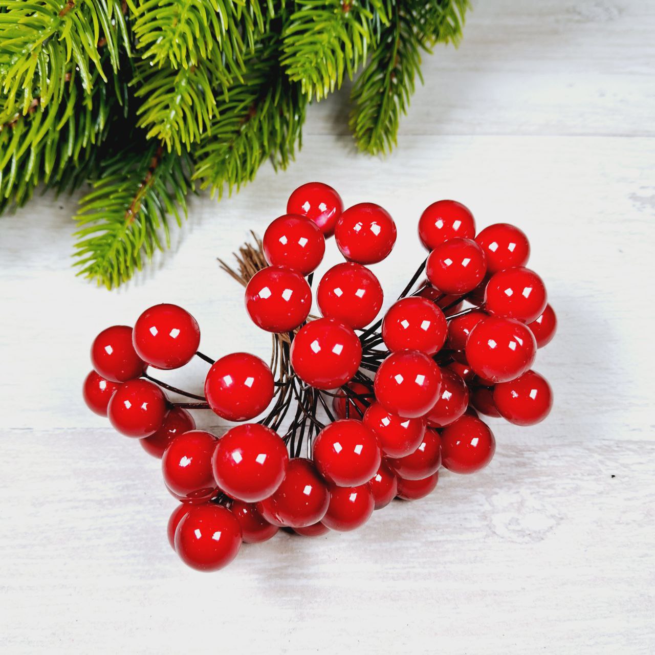 Набір декоративних ягід 1.5см, колір – глянсовий червоний 10шт
