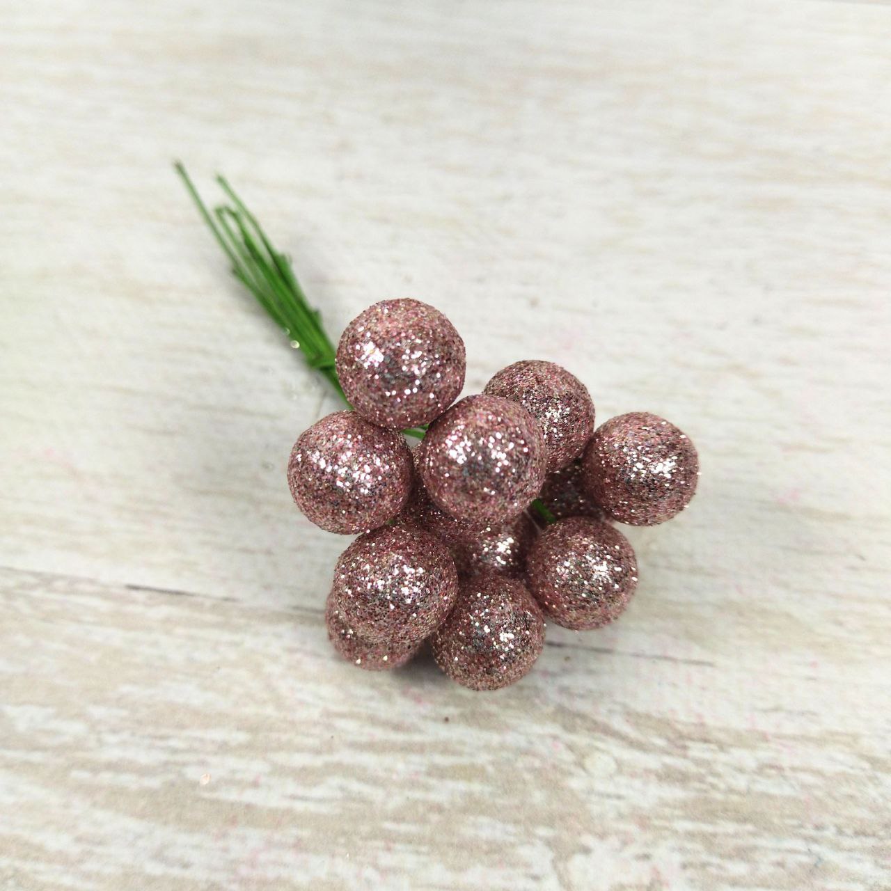 Набір декоративних ягід 12шт 12 мм, колір – рожевий гліттер 147-223
