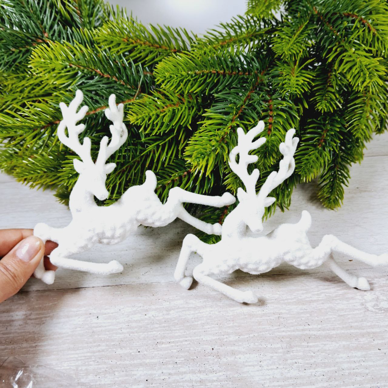 Фігурка оксамит Олень 14*11,5см бiлий з блиском 619224