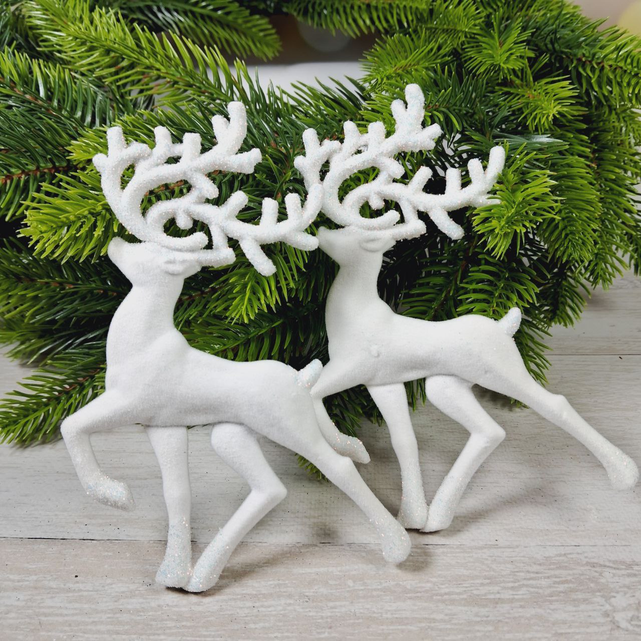 Фігурка оксамит Олень 14,5*8см бiлий з блиском 619300