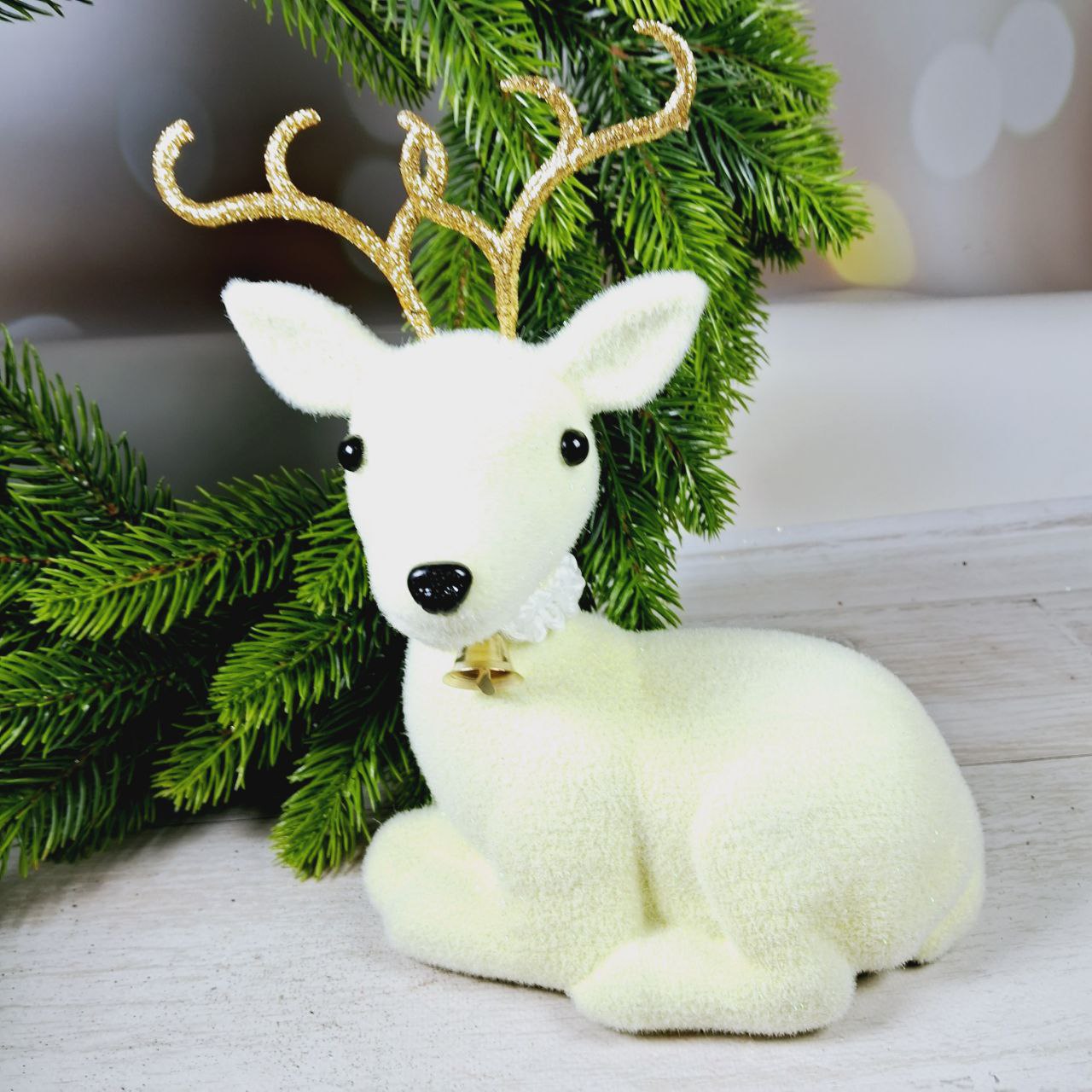 Фігурка оксамит Олень 20*21см молочний 612349-1