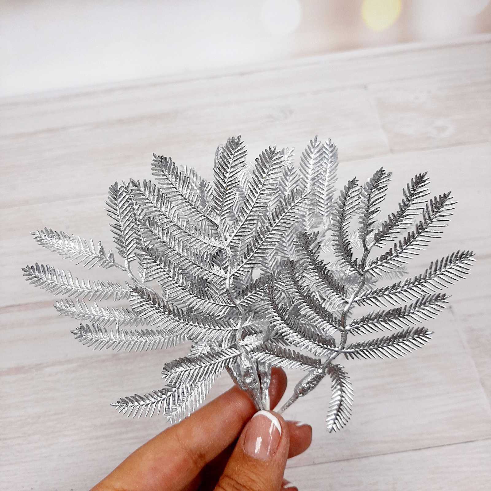 Главная страница » Магазин » Флористика » Гілки, Новий Рік та прикраси » Добавка пластик пальмовая веточка, 16 см, серебро С30151