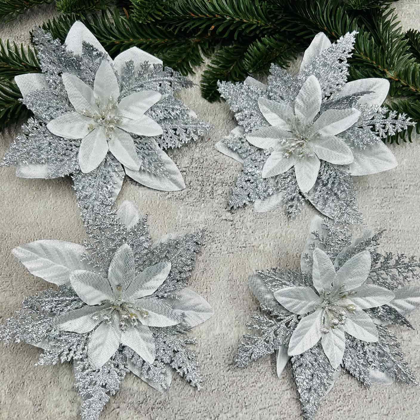 Квітка Пуансетія ажурна 15см Срібло НР15