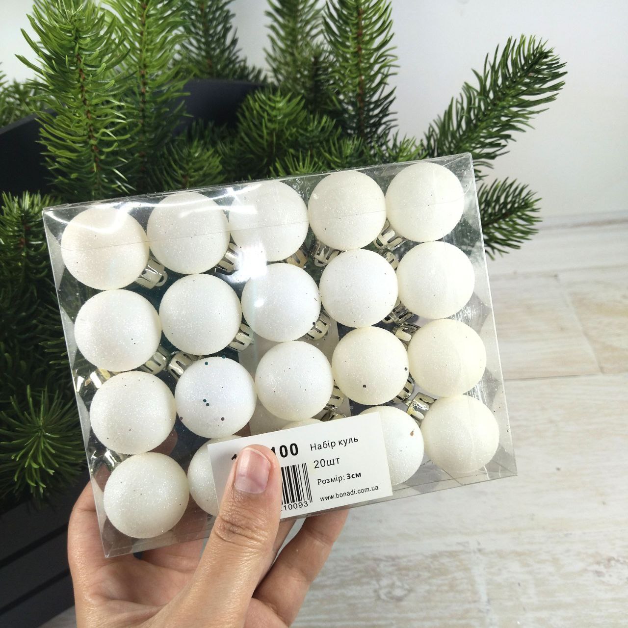 Набір ялинкових куль 3см білий з гліттером 20шт 147-100