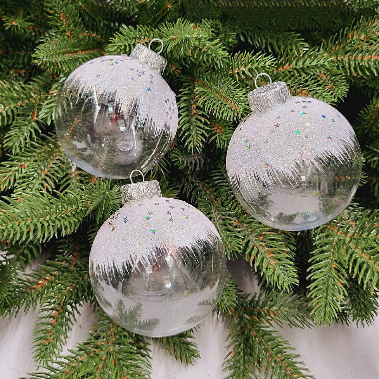 Набір ялинкових куль 8см ПРОЗОРА з БІЛИМ ІНІЄМ ,3шт, 680240