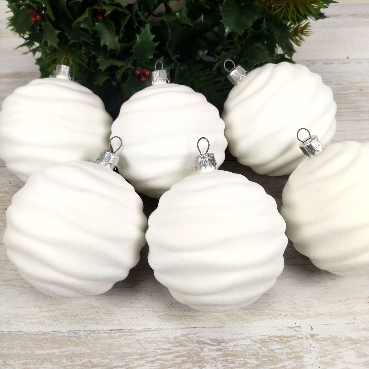 Набір ялинкових куль 8см.”Зефір” білий. 6 шт