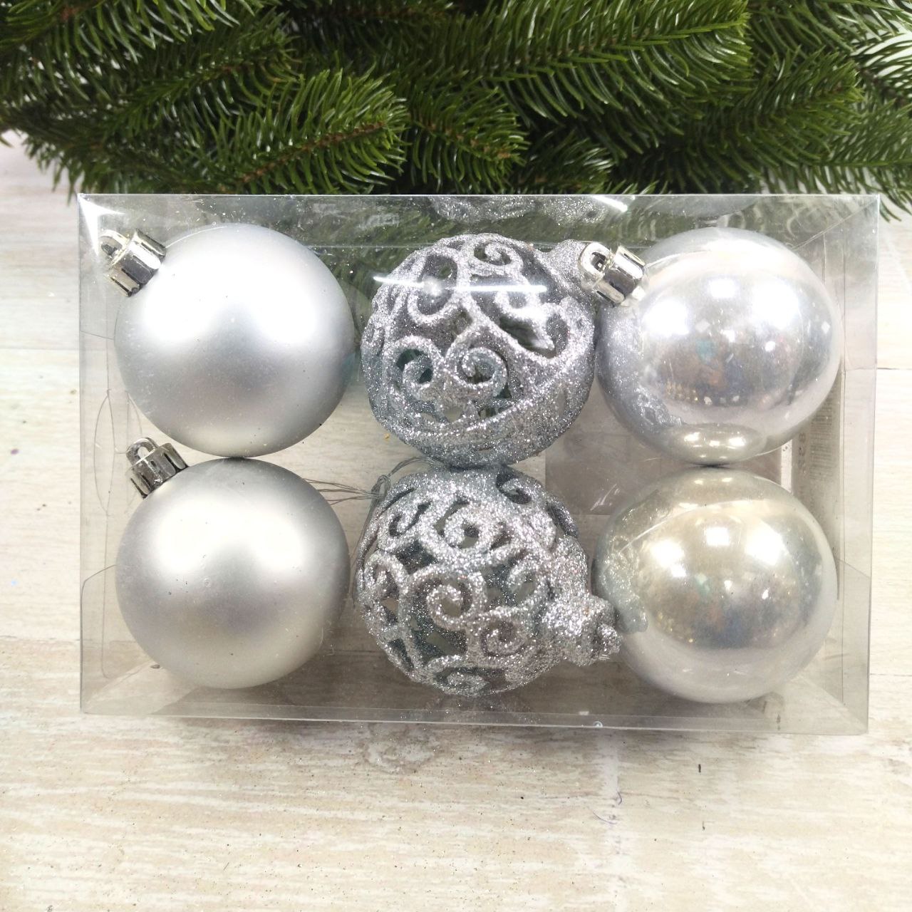 Набір ялинкових куль Ажур, 6см, колір – срібло, 6шт, 147-832