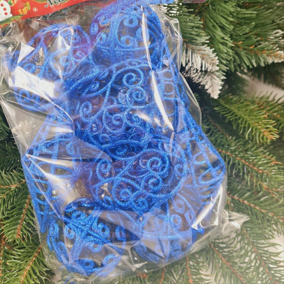 Набір ялинкових куль СИНІ глітер дуті, 12шт/уп 619178
