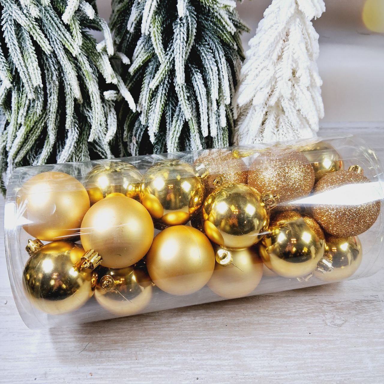 Главная страница » Магазин » Флористика » Гілки, Новий Рік та прикраси » Набор пластиковых ногодних шариков 6мм золото 24шт 147-297