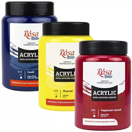 Главная страница » Магазин » Художні матеріали » Фарби » Акриловая » Фарба акрилова Rosa Studio 400мл 616 Кадмій жовтий світлий