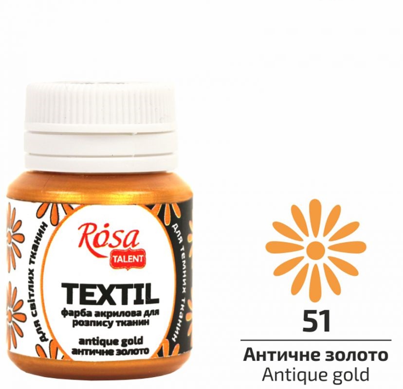 Фарба акрилова для тканини Rosa Talent 20мл 51 античне золото метал