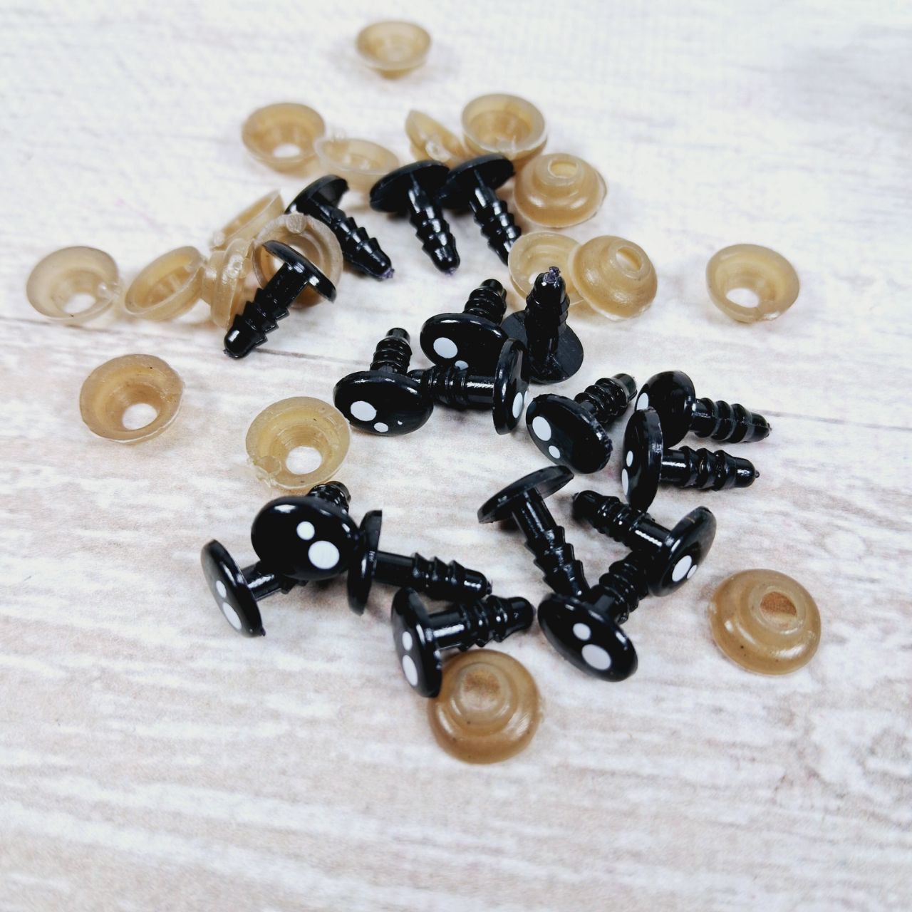 Очі пластикові кольорові з шайбою Лапки овал 7*9мм Чорні, 1 пара