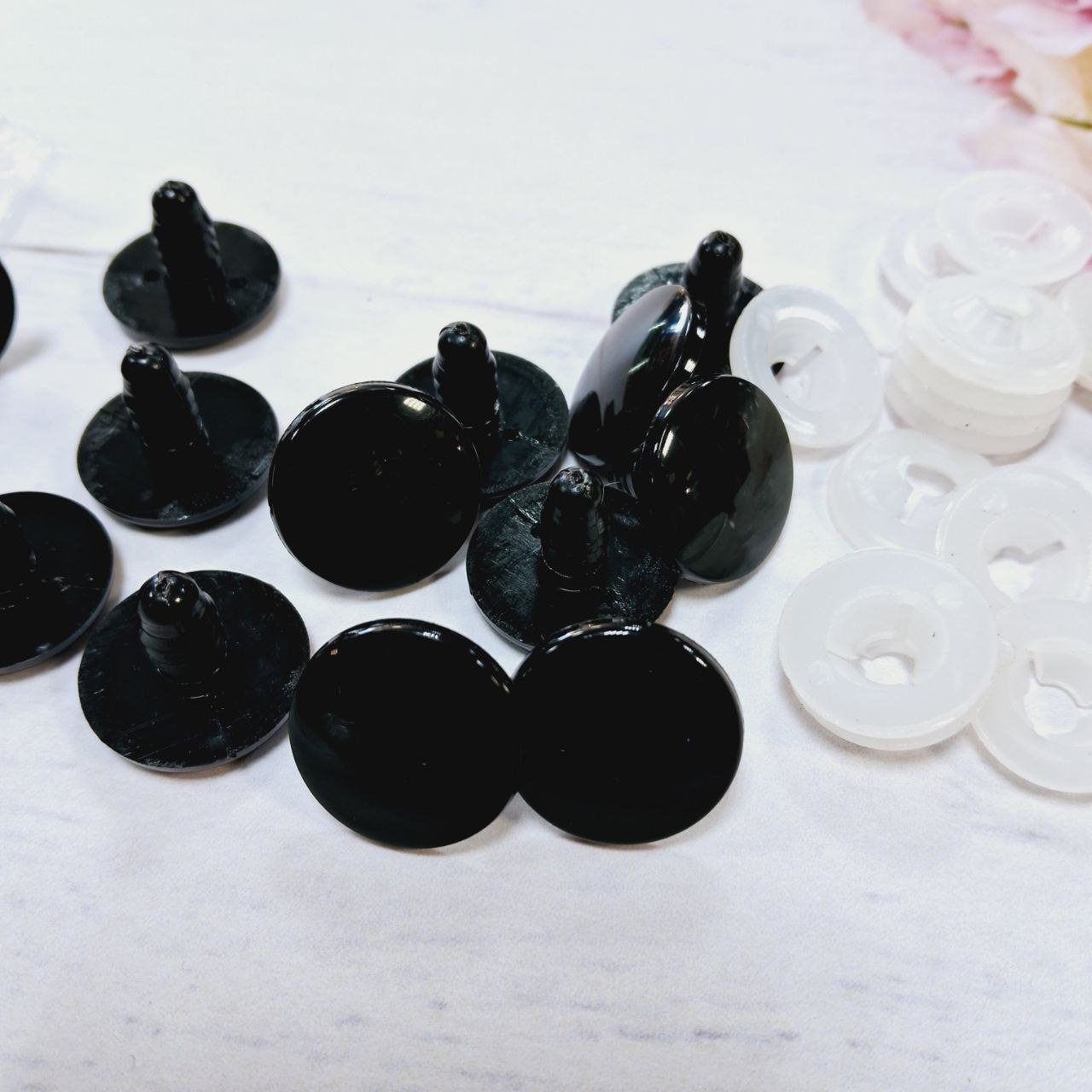 Очі пластикові кольорові з шайбою пласкі 18мм Чорні, 1 пара