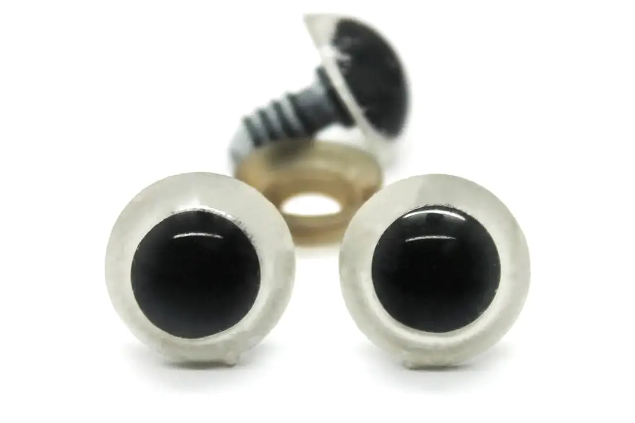 Очі пластикові кольорові з шайбою 14мм Білі з чормим, 1 пара ГВ0014в02
