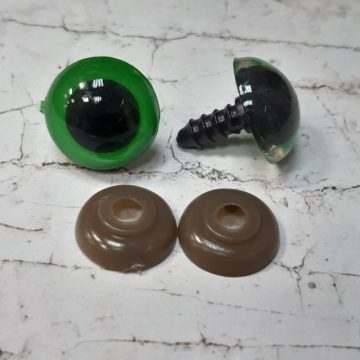 Очі пластикові кольорові з шайбою 16мм Зелені, 1 пара ГВ0016в05