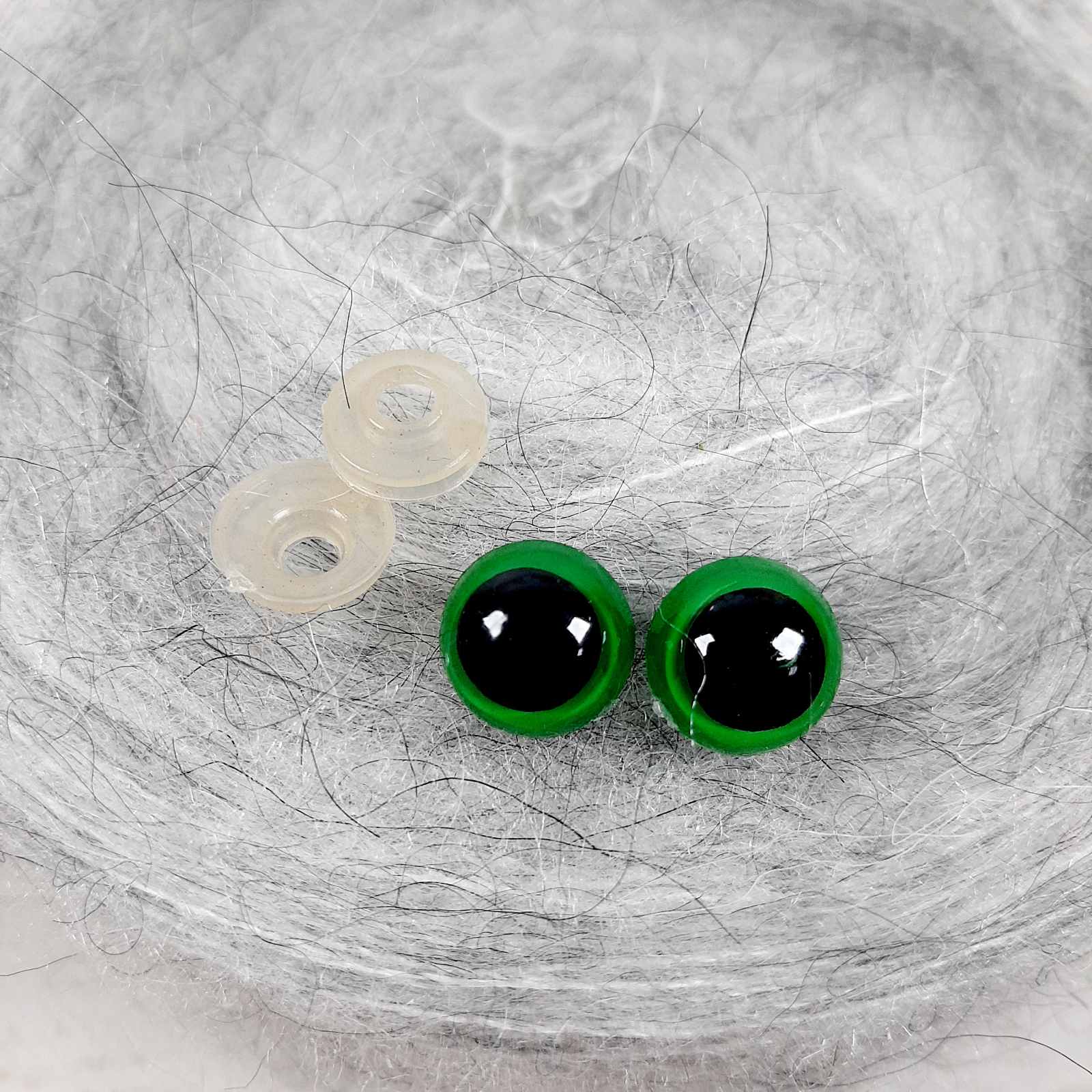 Очі пластикові кольорові з шайбою 8мм Зелені, 1 пара