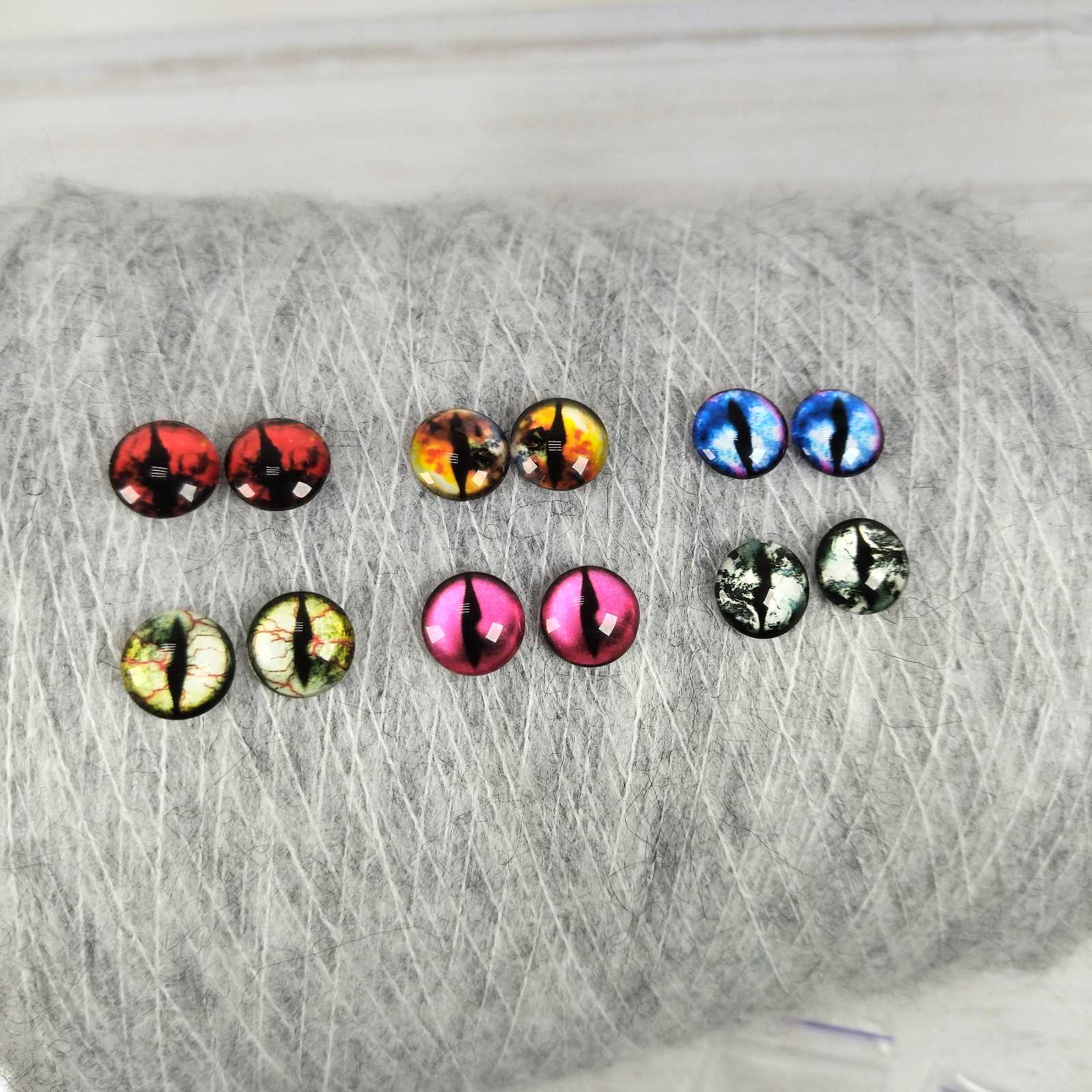 Очі кабашони скляні клейові 10мм 1пара асорті вузький зрачок