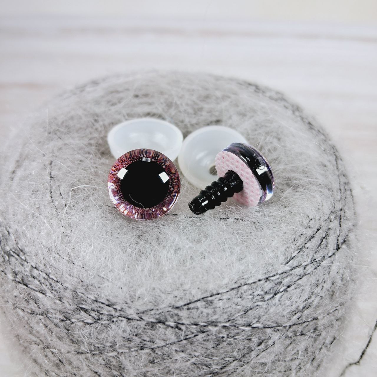 Очі круглі блискучий кант 14мм світло-рожеві райдужні 1пара