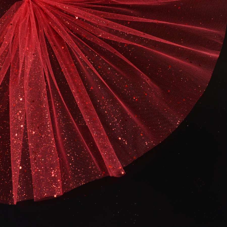 Фатин жесткий с блестками красный ш.160