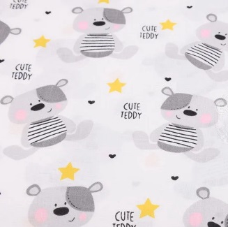 Хлопковая ткань (бязь) 160см №2448а Серые мишки и желтые звезды