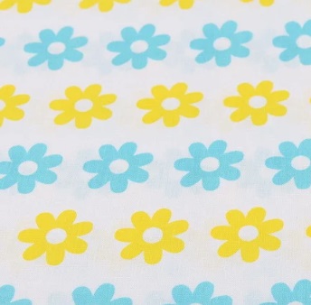 Расцветка: жёлтые, бирюзовые цветочки, фон – белый.