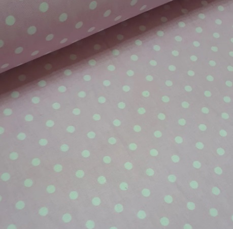 Хлопковая ткань (бязь) 160см “Белый горох на розовом 7мм”