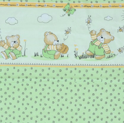 Расцветка польской ткани “Мишки с медом”, цвет зеленый.