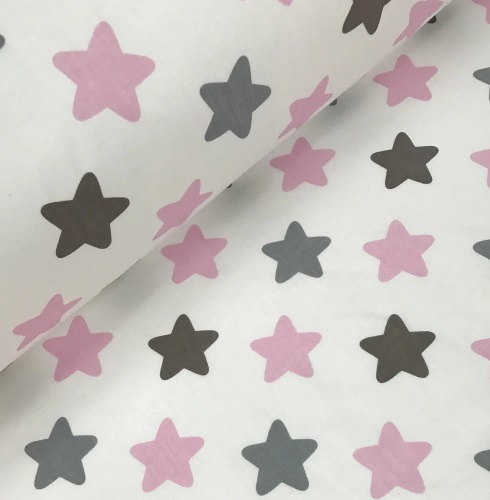 Хлопковая ткань (бязь) 160см “Звезды (пряники) розово – серые” (0,5*1,6м)