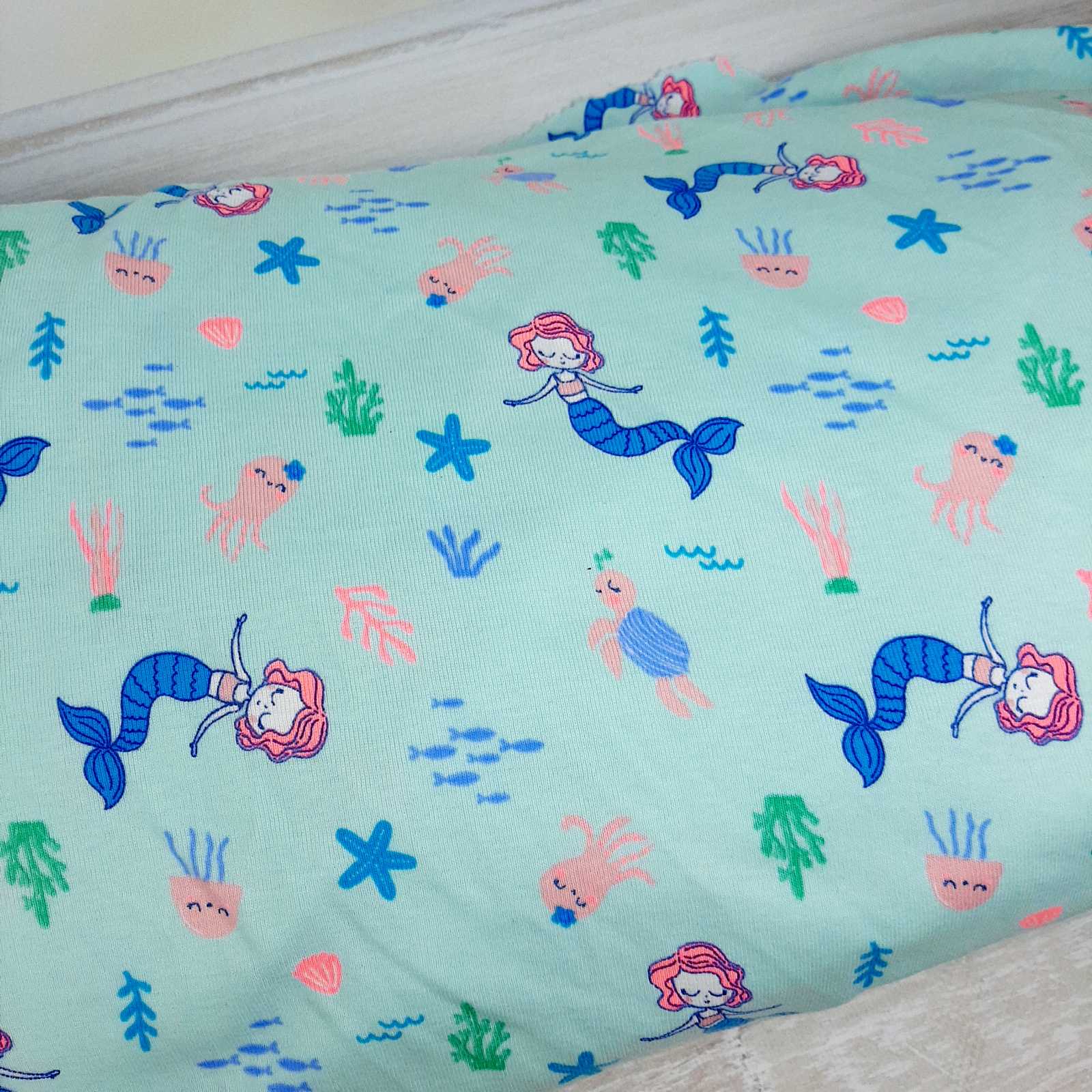 Ткань хлопок Турция 1,6м русалочки на бирюзовом