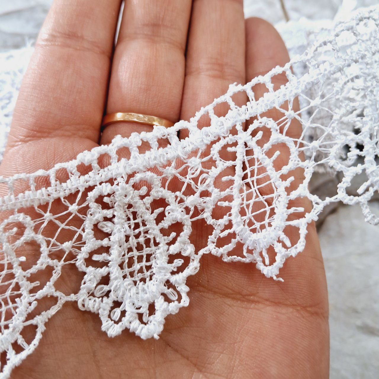 Мереживо підходить для одягу, скрапбукінгу, пошиття весільних суконь, обробки аксесуарів (весільні подушечки та підв’язки, альбоми для фото, книги побажань, тощо).