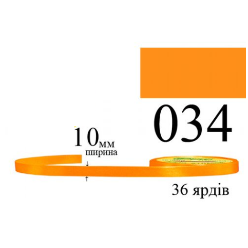 Стрічка атласна 10мм 33м 034 Мандаринова середня 30115