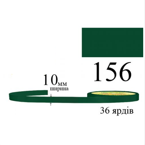 Стрічка атласна 10мм 33м 156 Різдв’яний зелений