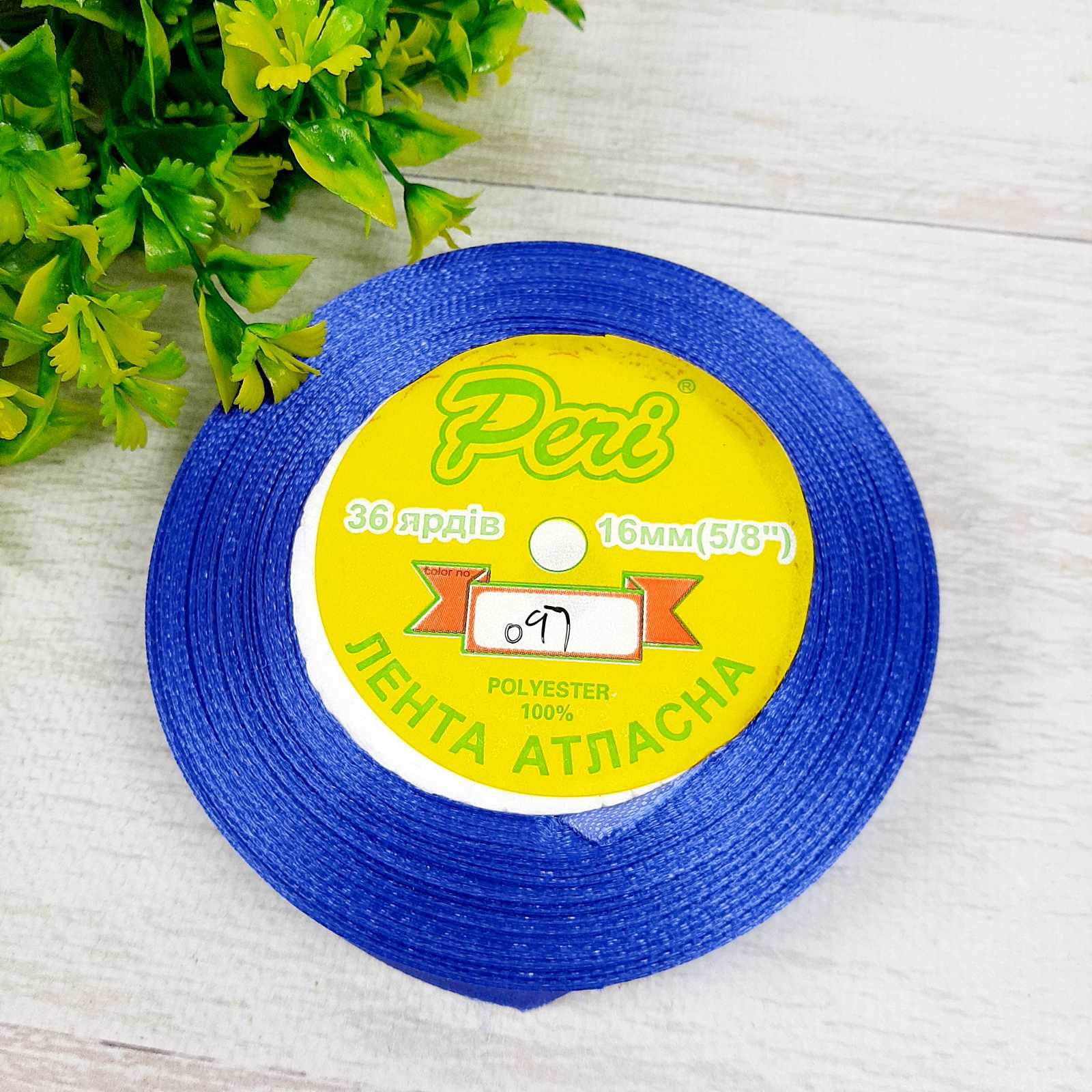 Стрічка атласна 16мм 33м 097 Чисто синій
