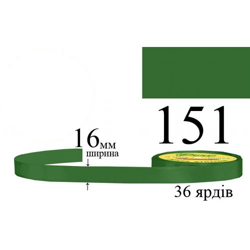 Стрічка атласна 16мм 33м 151 Зелений попуга дуже темний 28961