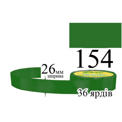 Стрічка атласна 26мм 33м 154 Смарагдовий дуже темний
